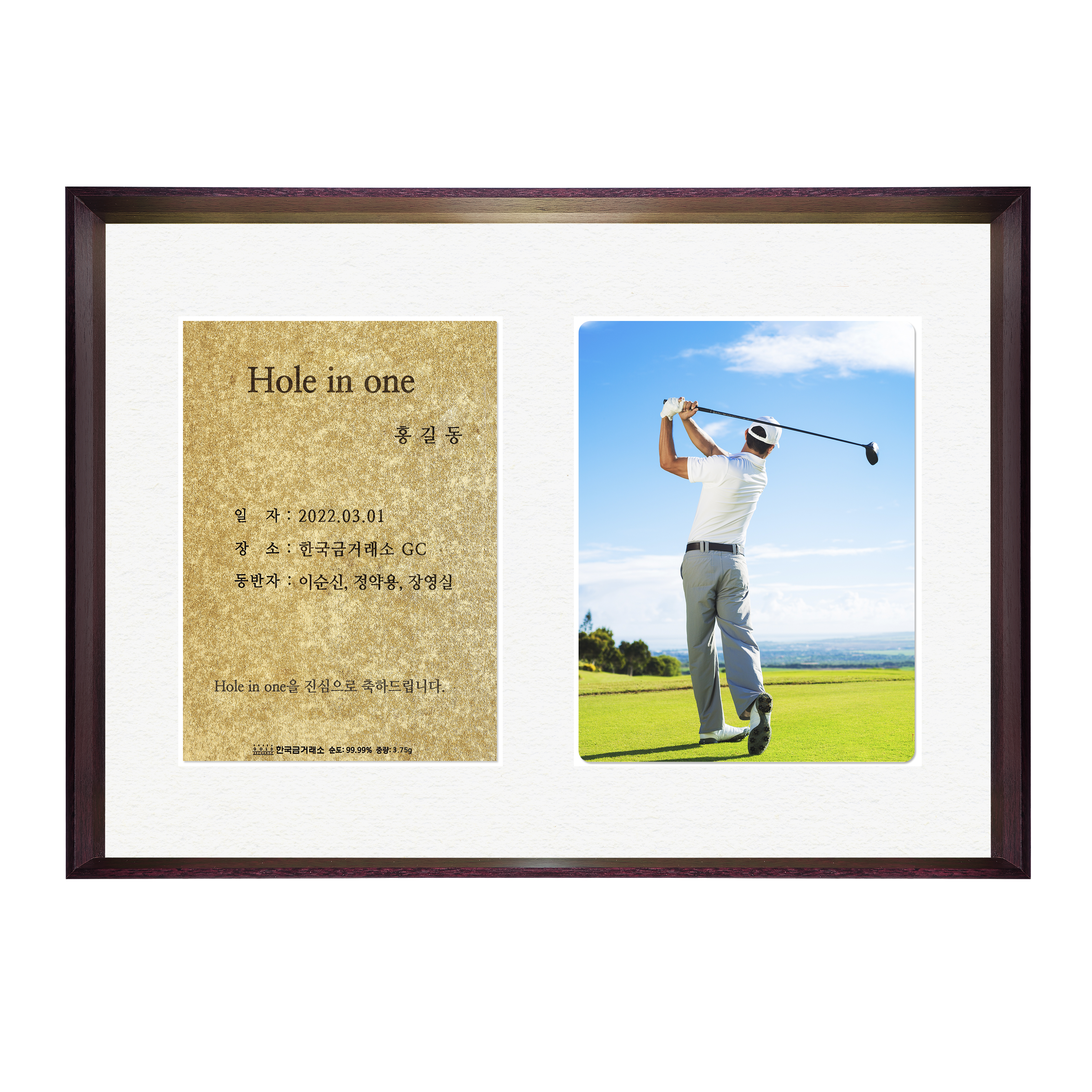 액자형 순금 홀인원 카드 3.75g